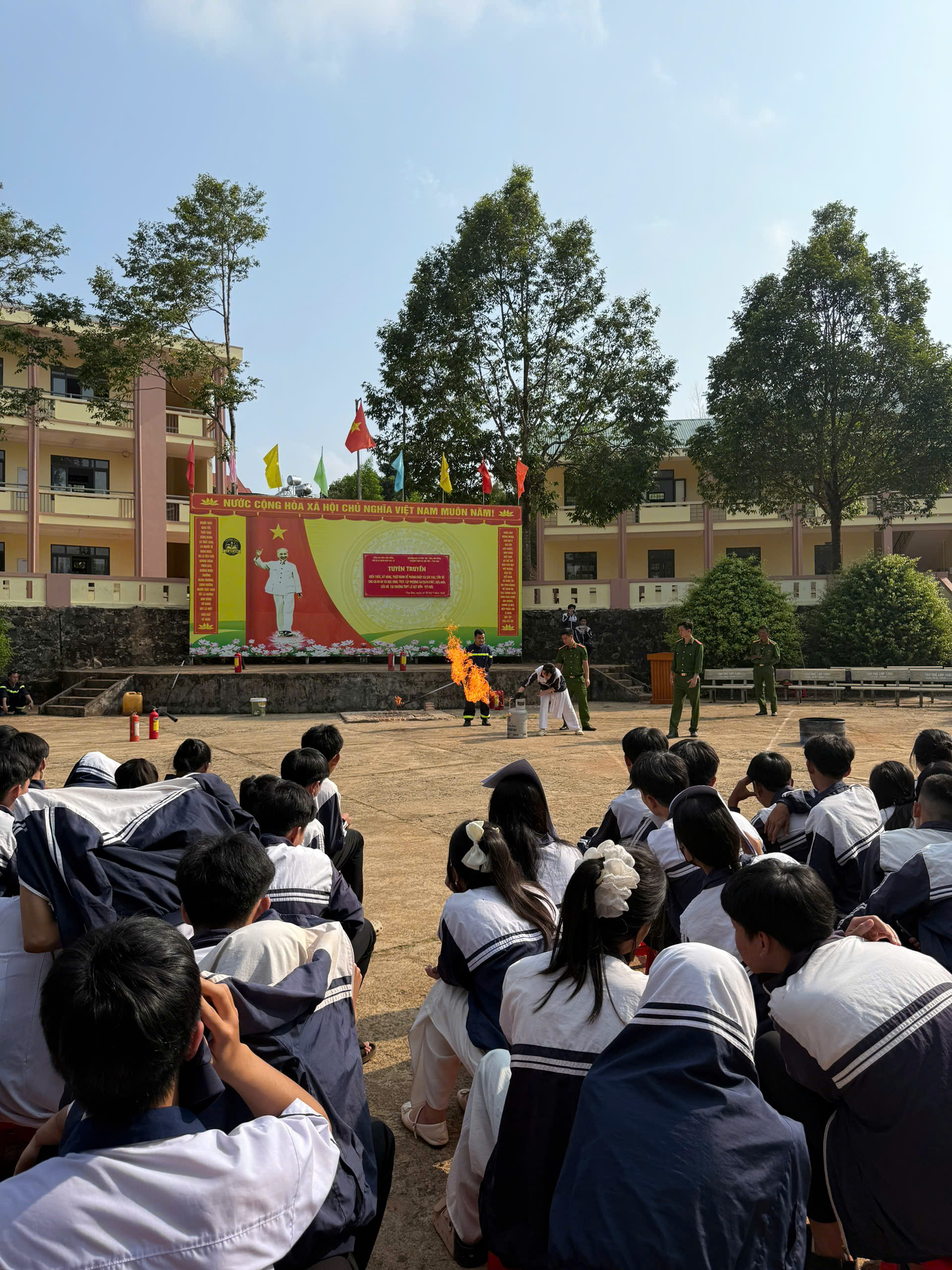 Chương trình được triển khai với nhiều nội dung thiết thực, gắn liền với thực tiễn đời sống, góp phần giúp học sinh hiểu rõ hơn về vai trò, ý nghĩa của công tác PCCC&CNCH trong bảo đảm an toàn tính mạng và tài sản. Tại buổi tuyên truyền, cán bộ, chiến sĩ đã phổ biến các kiến thức cơ bản về nguyên nhân gây cháy nổ, biện pháp phòng ngừa, cách xử lý tình huống khi xảy ra cháy, nổ; đồng thời hướng dẫn kỹ năng thoát nạn an toàn trong môi trường có khói, lửa.
