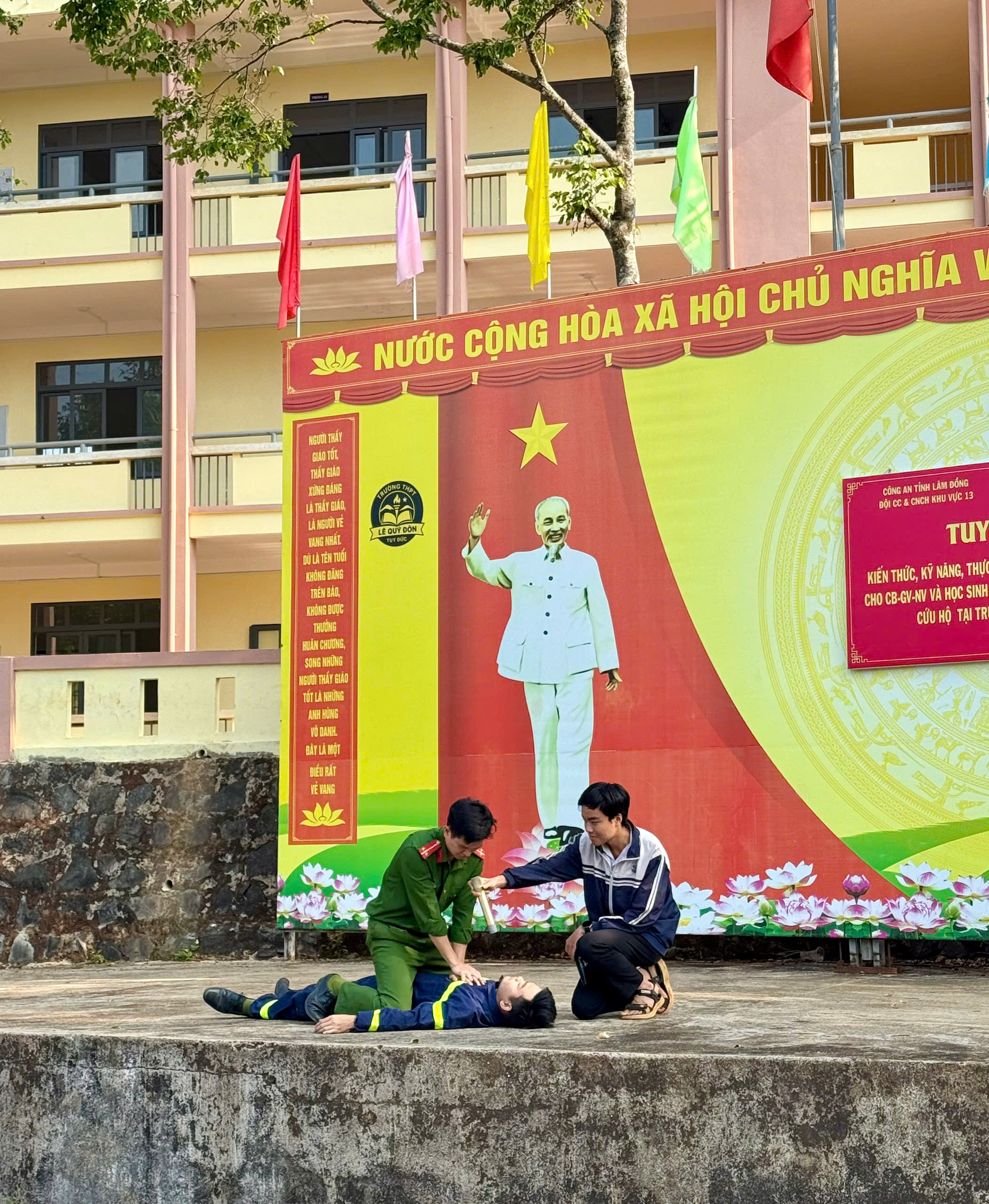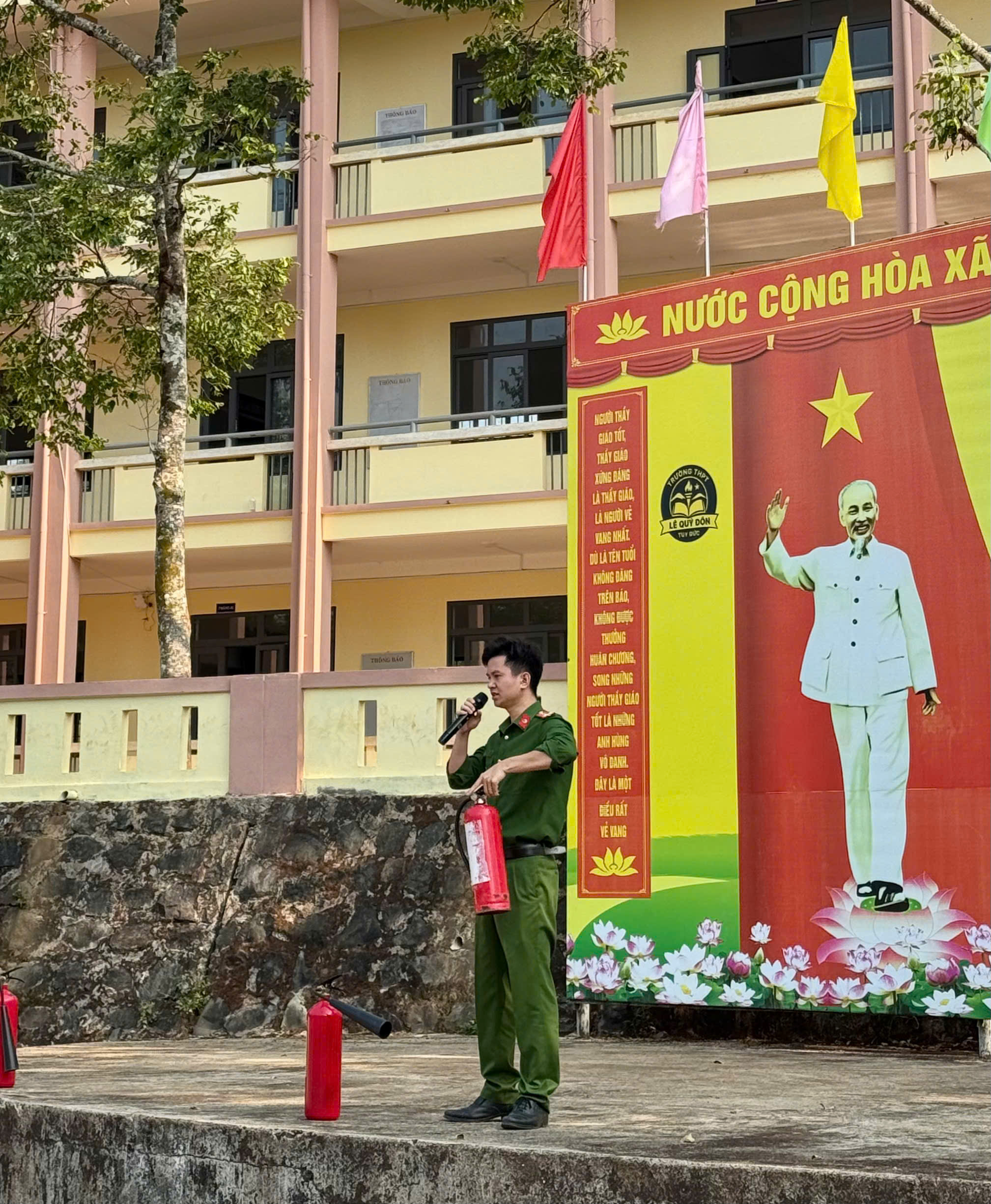 Nhằm nâng cao nhận thức, ý thức trách nhiệm và trang bị kỹ năng cần thiết về phòng cháy, chữa cháy và cứu nạn, cứu hộ (PCCC&CNCH) cho cán bộ, giáo viên và học sinh, Trường THPT Lê Quý Đôn – Tuy Đức đã phối hợp với Đội Chữa cháy và Cứu nạn cứu hộ khu vực 13, Công an tỉnh Lâm Đồng tổ chức hoạt động tuyên truyền, trải nghiệm và thực hành kỹ năng PCCC&CNCH.